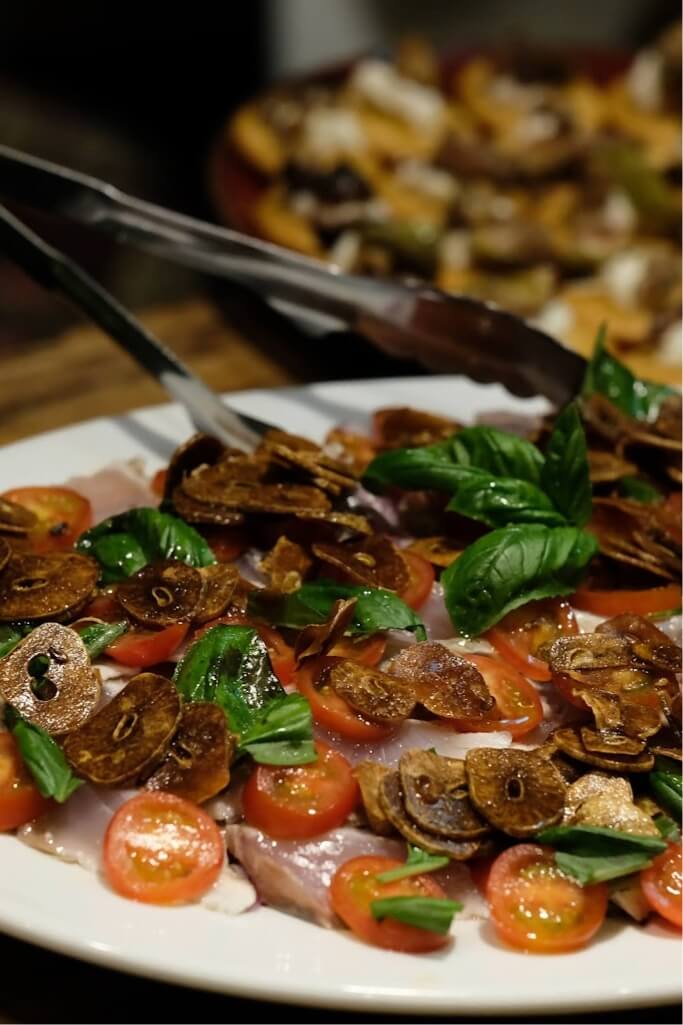 水分を含む薪は、炭とは異なり、燃えながらも、自身のもつ水分を蒸発させ、スチームのように蒸し焼きにします。これにより、素材の外側は燻香をまといながら香ばしく、中心部はみずみずしく仕上がります。